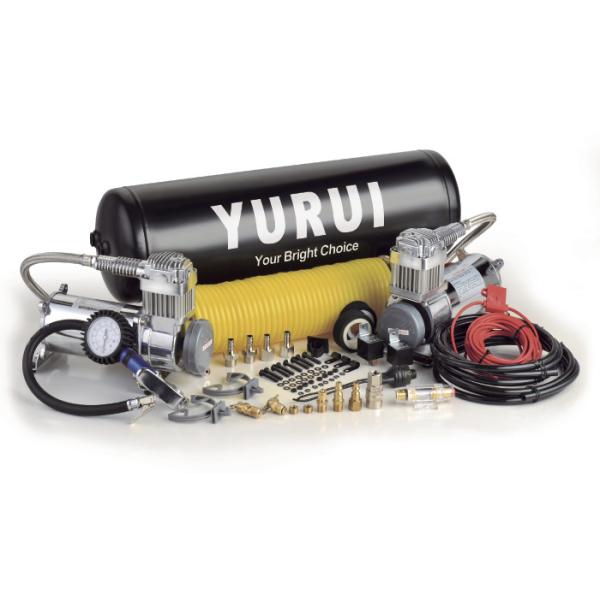 YuRui’s Dual YF6470R Onboard Air System is a pre-packaged compressed air solution that provides two YF6470R,33% duty cycle compressors ,a 2.5 gallon air tank,inline pressure regulation,and all components needed to install a working system capable of inflating tires,managing air locking differentials,and more.